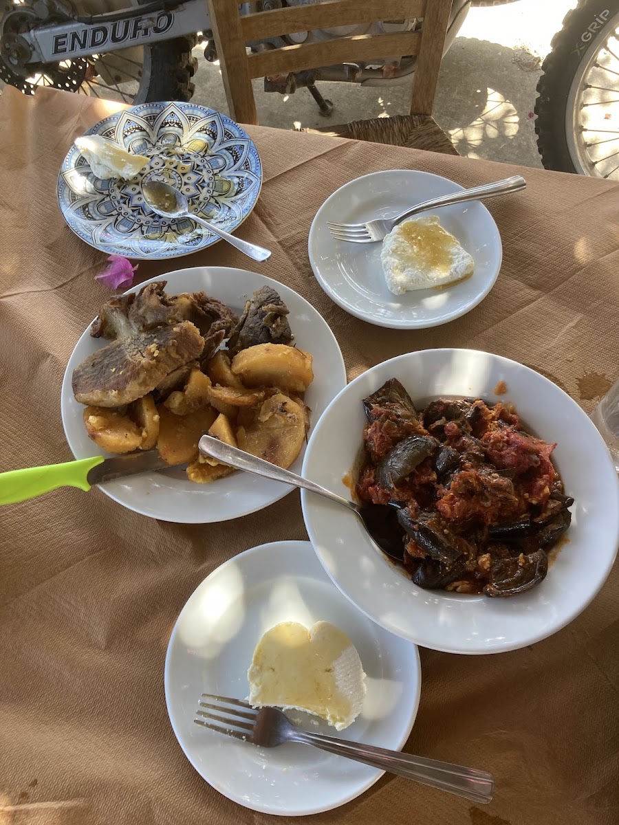 Bästa maten på Ikaria!!! Missa inte. Best food in Ikaria!! Don’t miss this gem! Zackarias grow his own vegetables, makes his own goat cheese, and has his own goats, rabbits etc. Genuine, traditional and authentic food, varied menu, that always give us positive surprise. Cosy environment. You eat under the shadow under the threes with an overview of the ocean in the horizon.