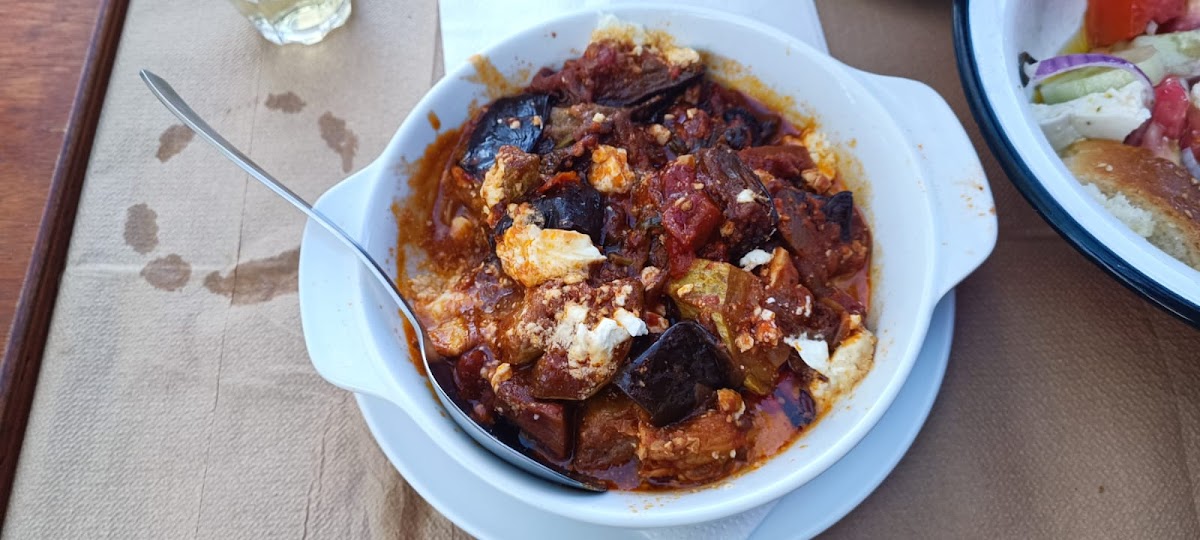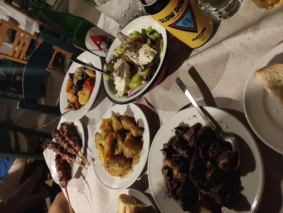 Simple but delicious food. Best “soufiko” (local ratatouille) on the island! Try the lamb in lemony sauce and the carrot salad (not as simple as it sounds and very tasty). Also, do not miss their delicious homemade lemonade!! The terrace is lovely. Only negative point: be sure to bring mosquito and wasp repellent!